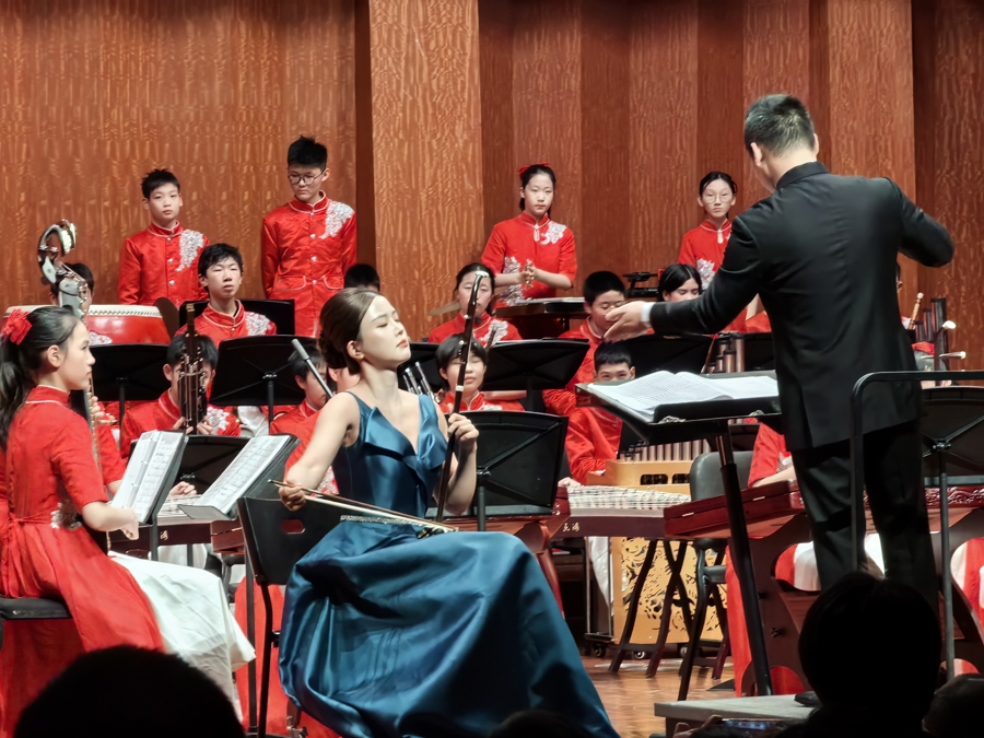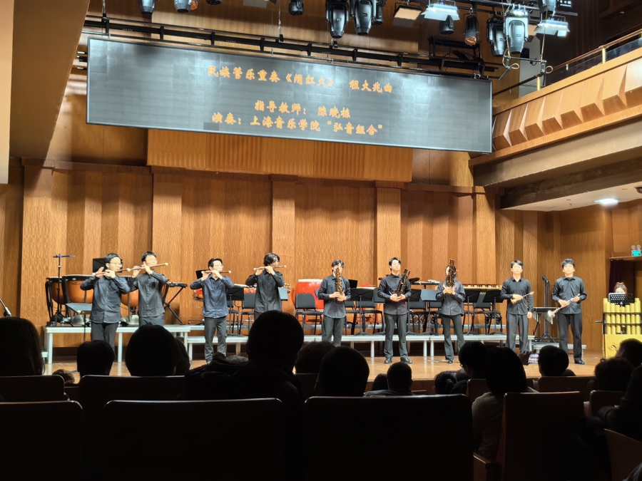 演奏冷门传统乐器高音笙的曾子昊首次作为学校民乐团一员,登上贺绿汀音乐厅的舞台,“这个舞台比学校的专业,音效更清晰”。从小学二年级因好奇选择了这门乐器,到如今每天坚持练习,小曾对笙这个传统乐器的热爱愈发深厚,“特别自豪能把它展示给大家,也让我更坚定传承传统民乐的决心。”
