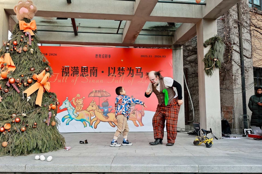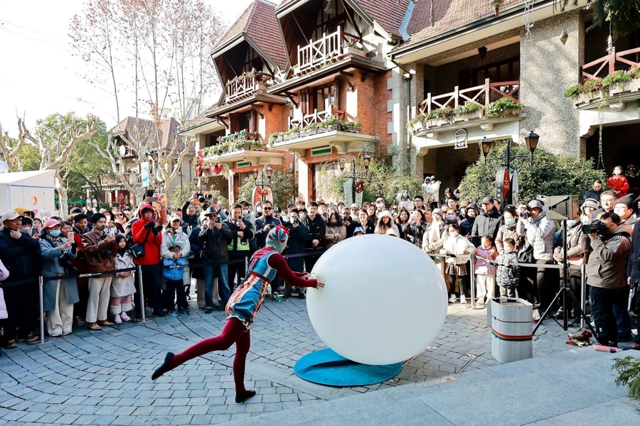 当历史街区化身开放式舞台,观众转角遇到怎样的惊喜?思南公馆联合大鲸鱼剧场,携手AEMI国际喜剧节,邀国际表演艺术家带来“世界小丑街头快闪”。五彩气球结合夸张表演,激起笑声阵阵。浪漫的“迎新飘雪”又添梦幻氛围。